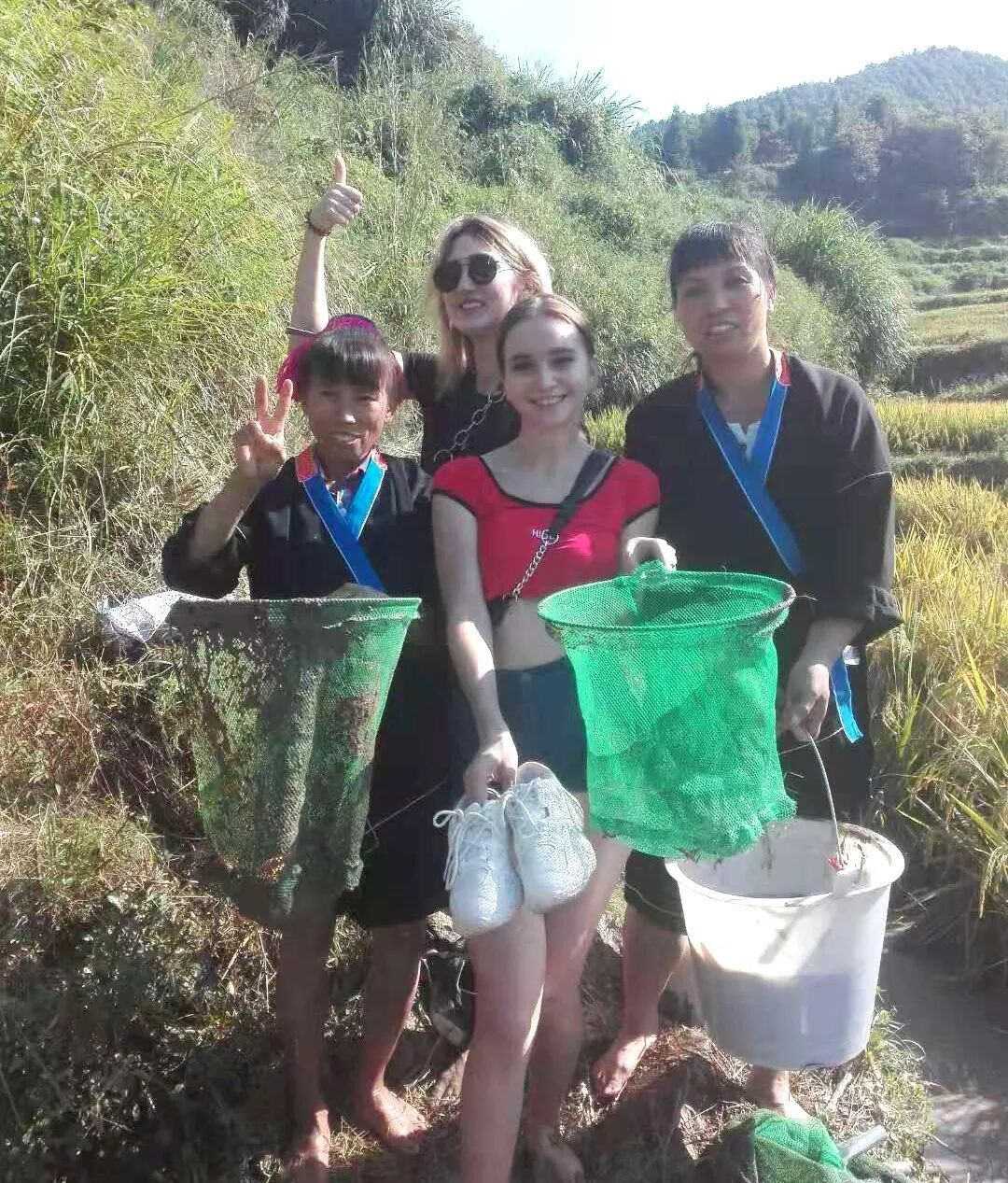 外国友人到中平村稻鱼基地参与田间渔乐(大坪镇政府供图)