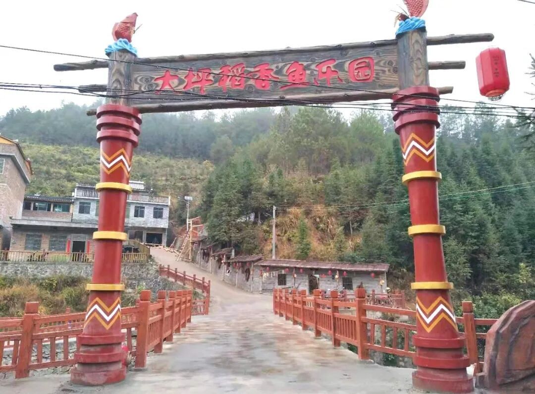 以中平村为生产基地的大坪鱼乡稻田生态养鱼专业合作社,拓展稻米品尝、稻田鱼捕获、蔬果采摘等休闲产业,发展集品尝区(农家乐)、体验区、展示区、服务区、瑶家民宿区于一体的文化旅游农业综合休闲园,带动农民增收致富。合作社组织开展一年一度的稻田鱼文化节。